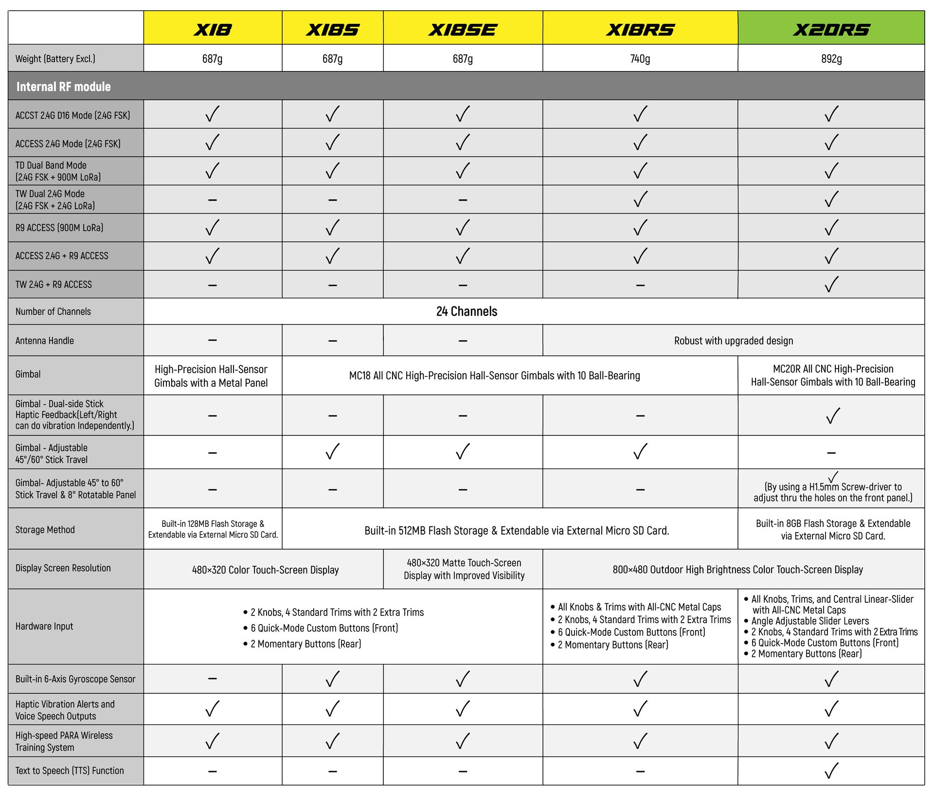 With solid performance based on the dual-band 900M/2.4G RF signal link with multiple operating combinations of RF modes, the TANDEM X18R versions are equipped with the TD-ISRM RS built-in RF module which is capable of supporting multiple protocols (like TW, TD, etc).