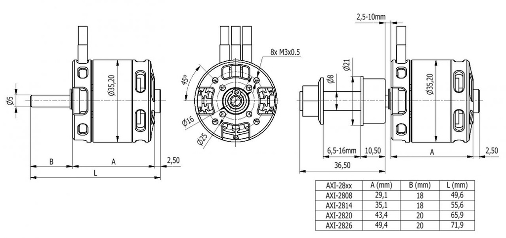 Gracias al uso de materiales más nuevos, estos motores logran en su categoría de peso una eficiencia extremadamente alta y una alta posibilidad de carga. AXI GOLD LINE V2 con la alta calidad de fabricación, fiabilidad y rendimiento son los mejores competidores disponibles en el mercado. Entregado sin hélice y soporte.