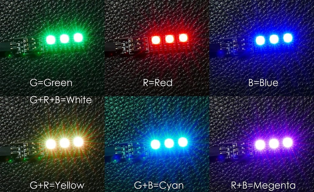 Placa RGB LED 5050 / 12V viene con tres LED RGB5050 y un interruptor de códigos de colores. Siete colores se pueden seleccionar por medio del interruptor. Esta placa electrónica da un efecto llamativo para sus multirotores o aviones.