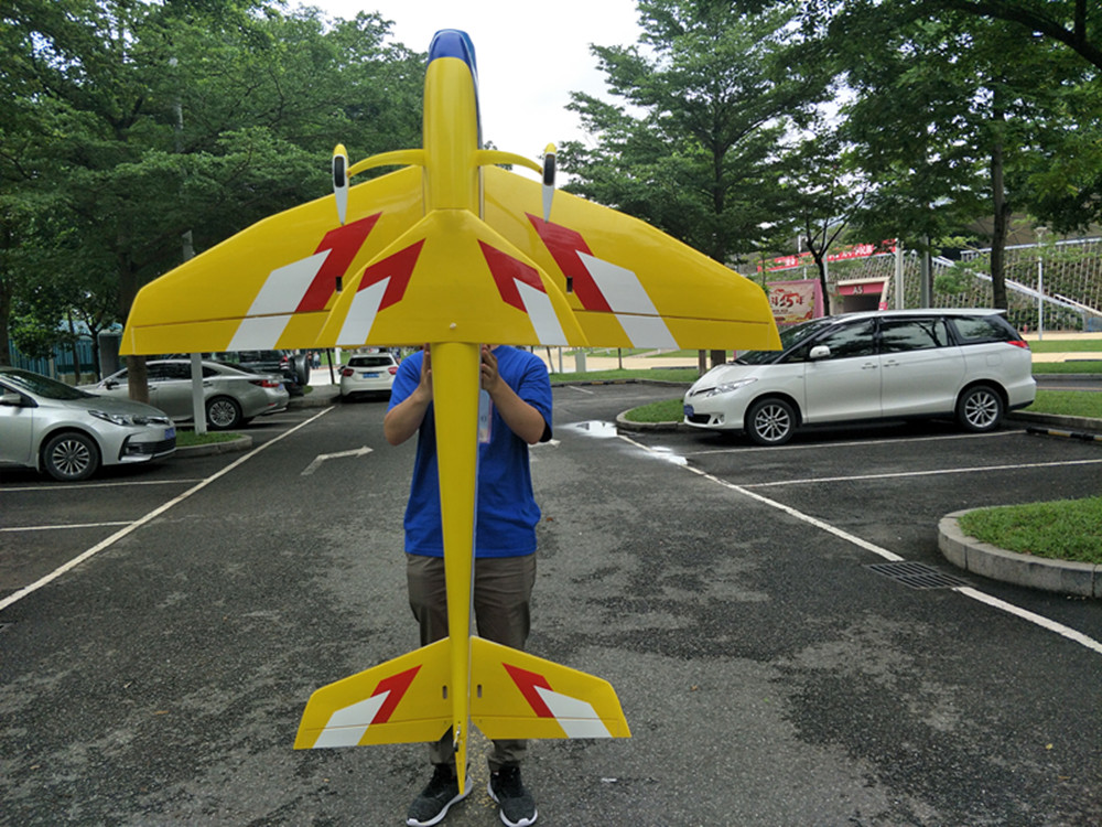 Avión acrobático competición F3A, fabricado artesanalmente, fuselaje de composite balsa + fibra de vidrio + refuerzos fibra de carbono. Puede ser motorizado con motor brushless o glow.